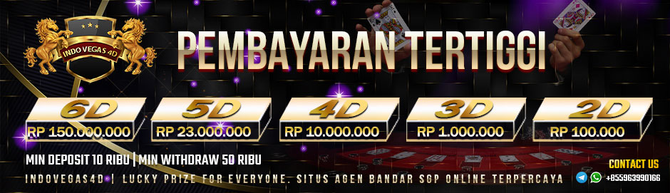 IndoVegas4D adalah salah satunya agen bandar togel wla terhebat dan paling besar di Indonesia. Situs ini sudah terbukti aman dan paling dipercaya hingga pantas sebagai tempat bermain togel online. Berapa saja kemenangan anda akan di bayar di sini, sebab Indo Vegas4D bukan BO kaleng-kaleng tetapi salah BO paling dipercaya yang dari 4DPrize Grup. Apakah itu 4DPrize Grup?, yakni salah satunya grup Bandar togel paling dipercaya yang tentu saja sudah bisa dibuktikan dan terbukti keamanannya dan di yakin oleh beberapa pemain togel Indonesia.